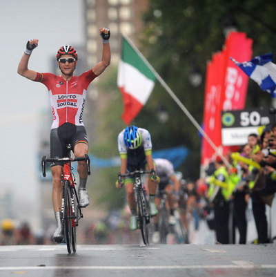 14.09.2015 | (rsn) – Tim Wellens (Lotto Soudal) hat beim GP de Montréal seine herausragende Spätform eindrucksvoll unter Beweis gestellt. Der Gewinner der Eneco Tour bezwang am Sonntag im zweiten der beiden kanadischen WorldTour-Rennen nach 205,6 Kilometern durch die französischsprachige Provinz Québec im...