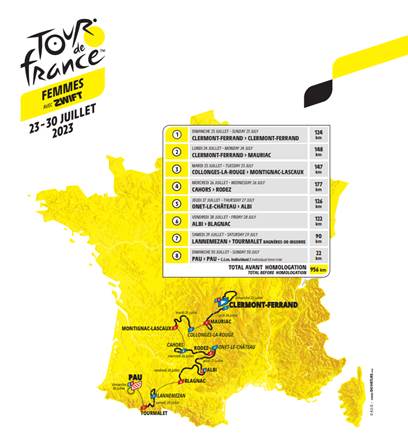 Die 2. Ausgabe der Tour de France Femmes beginnt am 23. Juli in Clermont-Ferrand im französischen Zentralmassiv und endet nach acht Etappen in Pau im Südwesten des Landes. Die Königsetappe steht am vorletzten Tag in den Pyrenäen mit der Bergankunft am 2.115 Meter hohen Col du Tourmalet an. Die Entscheidung fällt im abschließenden Zeitfahren, das über 22 Kilometer führt.