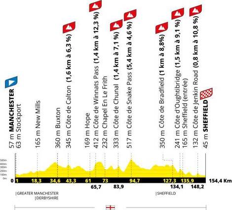 31.07.2027: 2. Etappe, Manchester - Sheffield, 154,4 km