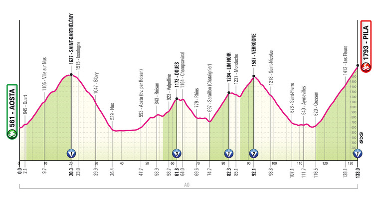 23.05.2026: 14. Etappe, Aosta - Pila, 133,0 km