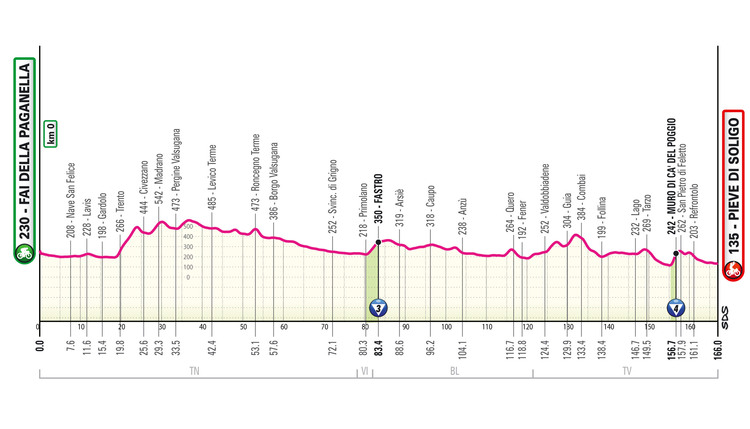 28.05.2026: 18. Etappe, Fai della Paganella - Pieve di Soligo, 166,0 km