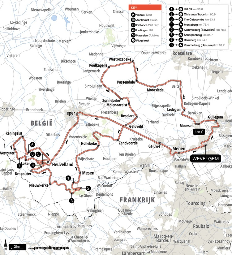 28.03.2026 | (rsn) - In Flanders Fields – From Middelkerke to Wevelgem heißt der bisher als Gent-Wevelgem bekannte Frühjahrsklassiker bei seiner 88. Ausgabe. Und damit kommen wir direkt zur ersten Auffälligkeit des Kurses. Denn Middelkerke-Wevelgem startet eben – seit 2020 bereits – nicht mehr in Gent...